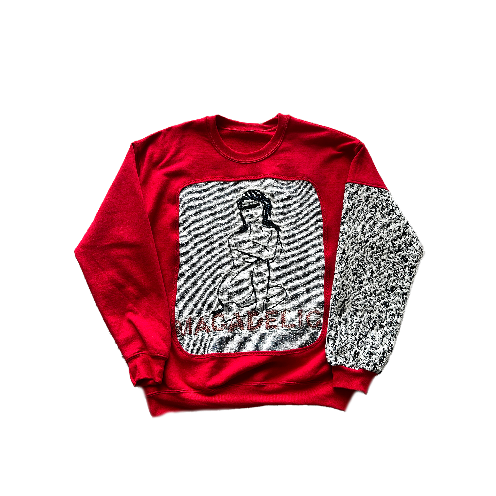 Create your own custom woven tapestry crewneck! To ensure uniqueness, custom pieces are 1 of 1 and will not be replicated.