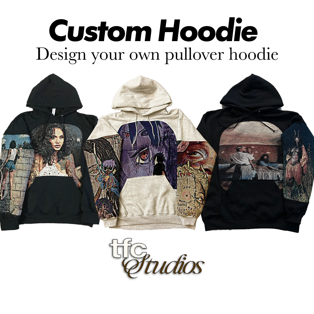 Create your own custom woven tapestry hoodie! To ensure uniqueness, custom pieces are 1 of 1 and will not be replicated. How does it work?